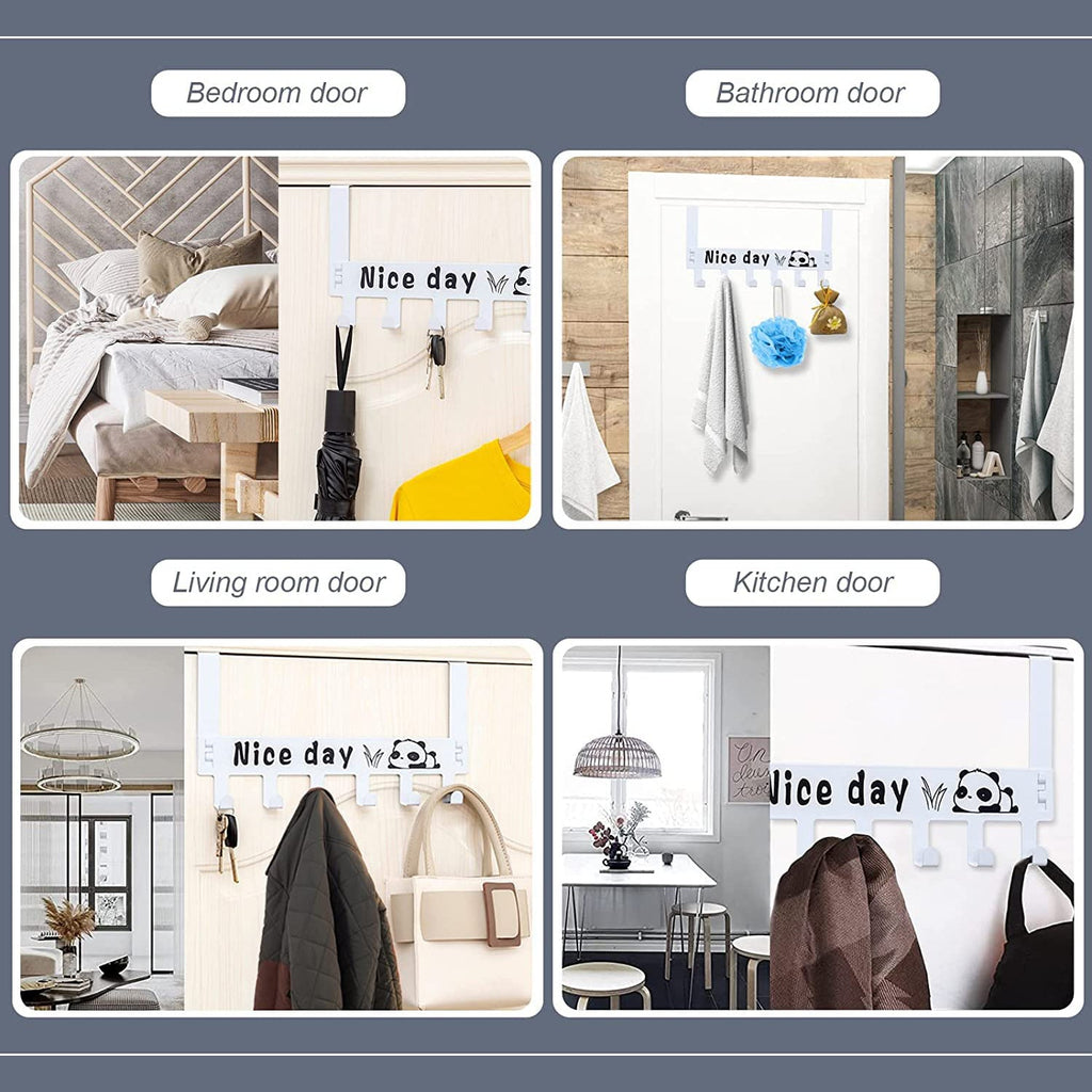 Heavy-Duty Carbon Steel Cartoon Nice Day Over Door Hook Hanger Rack, Towel Hanger, Removable Door Hook, Coat, Scarf, Cloths Hanger (2 pc / 6 Hook / White Color)